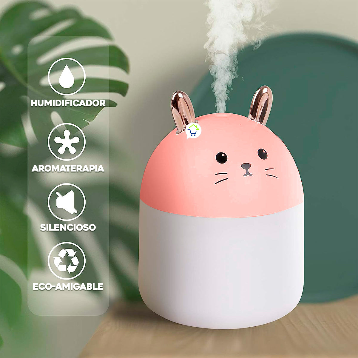 Hermoso humidificador con orejas de conejo, el cual con su moderno diseño combinará perfecto con tu mesa de noche o sala de estar, además cuenta con luz led multicolor cambiante. Material: Plástico PP. Tamaño Aprox. Producto: 11 x 8 x 8 cm / Largo del cable: 78 cm. Capacidad del humidificador: 250 ml. Funcionamiento: Micro USB DC5V. Potencia: 2 W. Cantidad de pulverización: 25-35 ml/h Peso: 65 g. El humidificador ayuda a mejorar la función pulmonar, promueve el metabolismo, mejora la resistencia a las enfermedades respiratorias, mejora el sueño y elimina el humo en el aire. Humidifica el aire de la habitación u oficina refrescando y mejorando la calidad del aire que respiramos. Con un modo de luz nocturna único, puedes añadir un toque de color en las noches. Al tocar ligeramente el botón puede obtener rápidamente aire fresco y humedecer el espacio que desea llenándolo de un delicioso aroma. El humidificador cuanto con luces Led que le dan un toque único a cualquier espacio. Chip de atomización MHZ, rocíe agua pura sin fenómeno de polvo blanco. Pieza atomizadora por tratamiento especial, resistente a la corrosión, a prueba de ácidos, resistente a los álcalis, apta para todo tipo de agua con PH. Funcionamiento del botón: Toca ligeramente el botón táctil 1 vez para encender el humidificador con las luces, tócalo una vez más si deseas apagar las luces y por último si lo tocas por tercera vez se apagará. No sumergir toda la pieza, solo la parte del contenedor, el resto del artefacto puede limpiarse con un paño suave. Siempre mantén el humidificador con agua para evitar daños en el dispositivo. Agrega 10 o 15 gotas de esencia según el área que desees cubrir con el aroma. Nota: El humidificador no contiene esencia debe comprarse por su cuenta según sus gustos. Contenido del paquete: 1 Humidificador. 1 Cable USB. 100 % Nuevos.