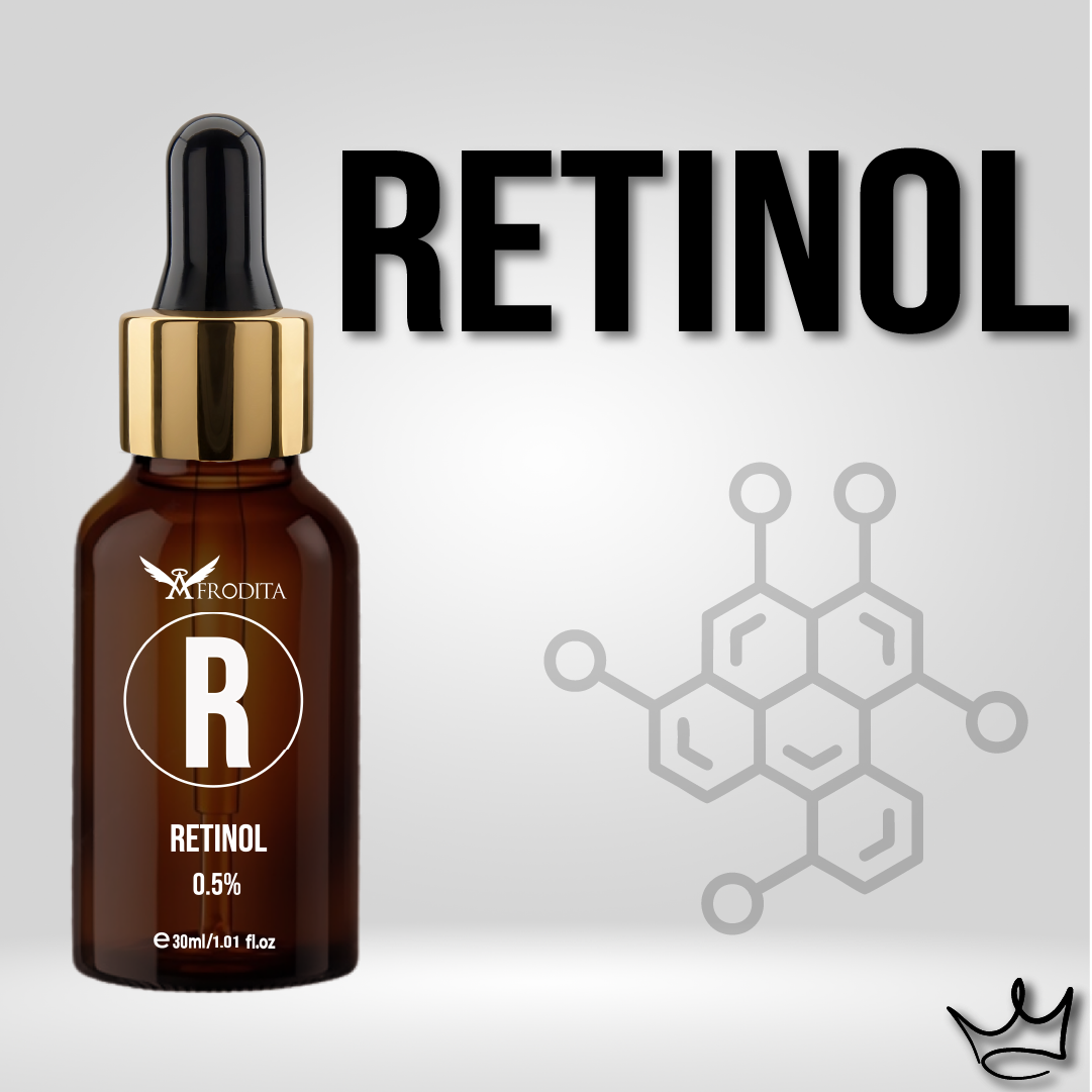 El RETINOL 0.5% AFRODITA es el tratamiento ideal para aquellas personas que buscan un cuidado antienvejecimiento de alto rendimiento. El retinol es un principio activo muy completo porque además de estimular la producción de elastina y colágeno, que permite reafirmar la piel, elimina las células muertas (acción exfoliante), favoreciendo la renovación de la piel, de forma que se aprecia más uniforme e iluminada. Resulta eficaz también como despigmentante, ya que permite mejorar las manchas del sol, por lo que es interesante para aquellas mujeres a las que además de los signos de la edad les preocupan las manchas. Se absorbe rápidamente, favoreciendo la penetración del activo y no deja una textura pesada sobre la piel, es uno de los serum que logra resultados más rápidos debido a su acción concentrada.