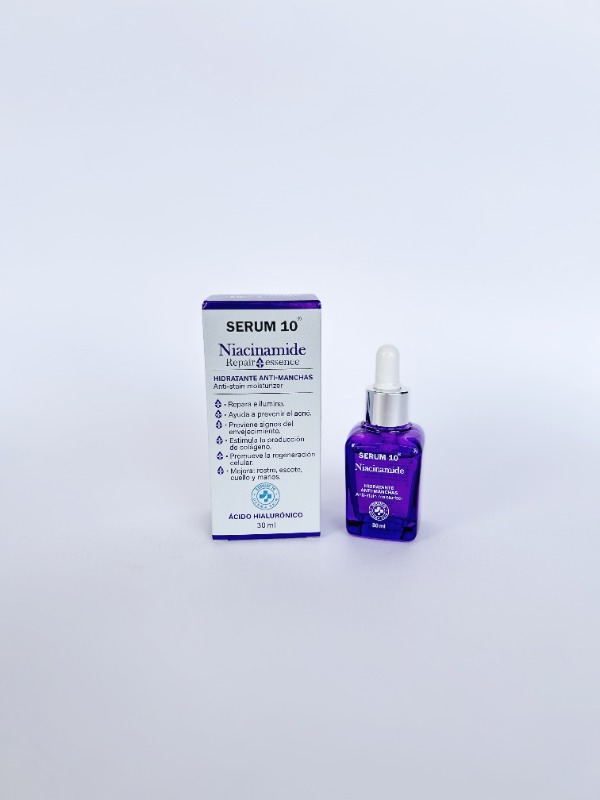 La niacinamida regula la producción de grasa en la piel, en antioxidante, despigmentante y ayuda a disminuir las arrugas. Compatible con todas las pieles.
